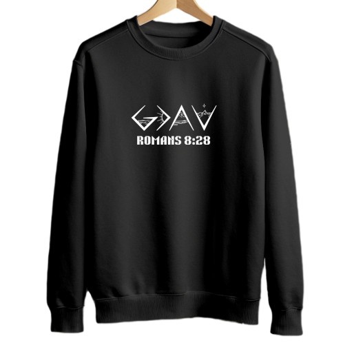 Show your faith boldly with our Romans 8:28 Christian Sweatshirt, featuring a unique “GOD” symbolic typography design paired with the powerful verse Romans 8:28.